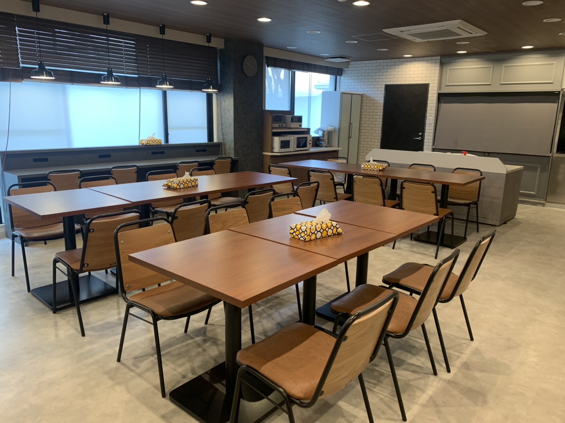 毎日の食事はダイニングルームで。利用時間内であれば、グループ学習や自習をしたり、雑談をしたり、使い方は自由自在です。